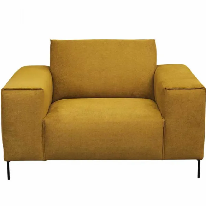 Deze milieu vriendelijke fauteuil, genaamd de Höft, is gemaakt van gerecyclede PET-flessen. De gerecyclede stof voelt heerlijk aan! De Höft is uitgevoerd in de stof Regain Oker (geel). De fauteuil heeft een vast kussen, maar door de manier hoe dit kussen is gestikt, is het net alsof de fauteuil een los kussen heeft.