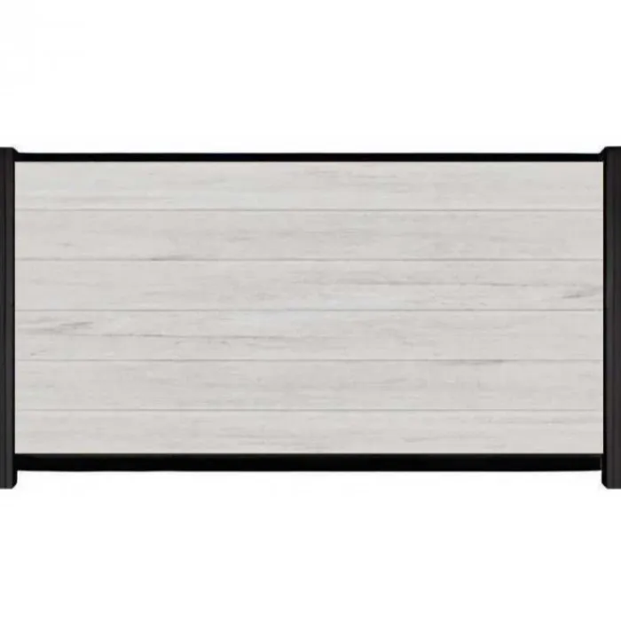 Schutting composiet co-extrusie Garda bi-color beige met zwart aluminium kader (180 x 90 cm). Deze schutting wordt geleverd als een zelfbouw pakket waarmee je zelf een unieke schutting kunt maken.