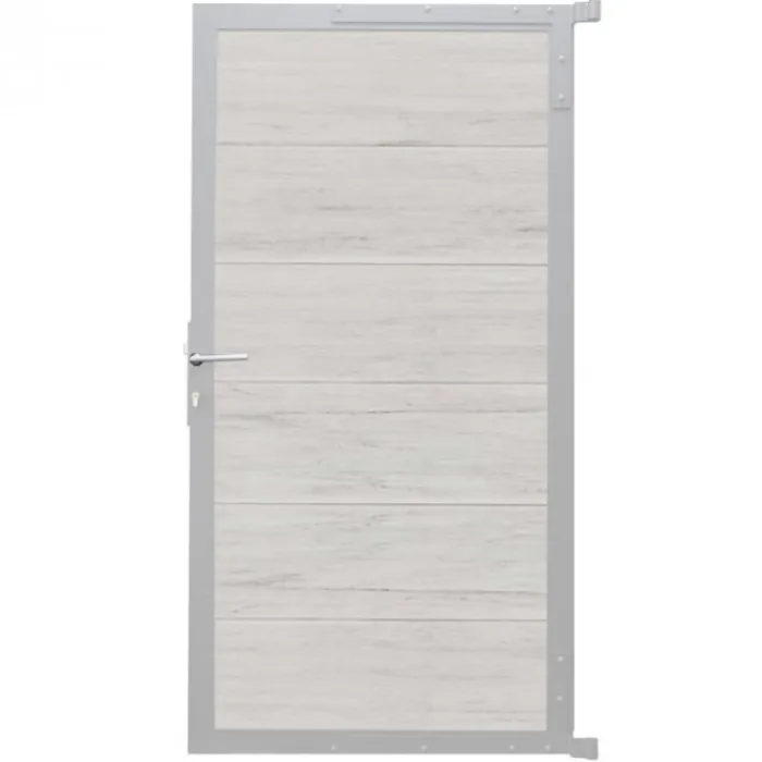 C-Wood tuindeur composiet Mix & Match frame aluminium blank (90 x 180 cm). De netto hoogte van deze tuindeur is enkele centimeters lager dan de opgegeven 180 cm. Deze komt uit op 175 cm hoog. De deur wordt geleverd inclusief deurbeslag.