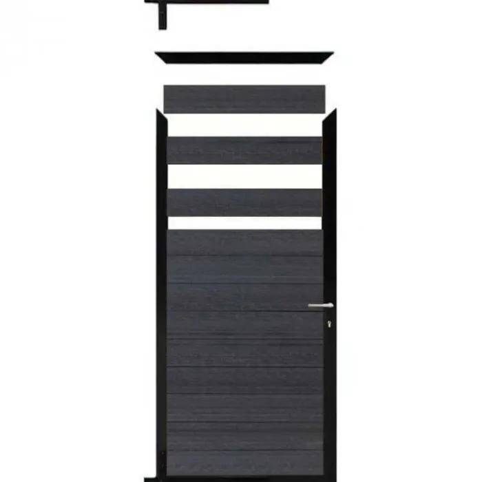 C-Wood tuindeur composiet Mix & Match frame aluminium zwart (90 x 180 cm). De netto hoogte van deze tuindeur is enkele centimeters lager dan de opgegeven 180 cm. Deze komt uit op 175 cm hoog. De deur wordt geleverd inclusief deurbeslag.