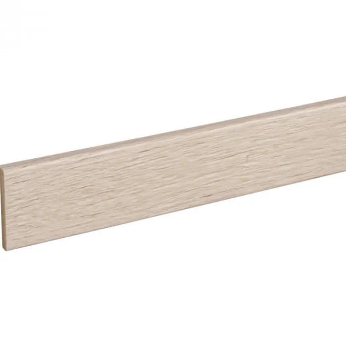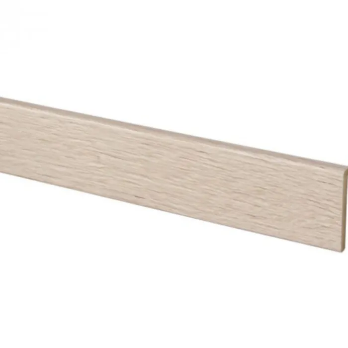 CanDo open trapprofiel in ijs eiken. Dit is een extra ‘neus’ die je kan plaatsen op de achterzijde van een traptrede. Je kan hiermee een open trap bekleden.