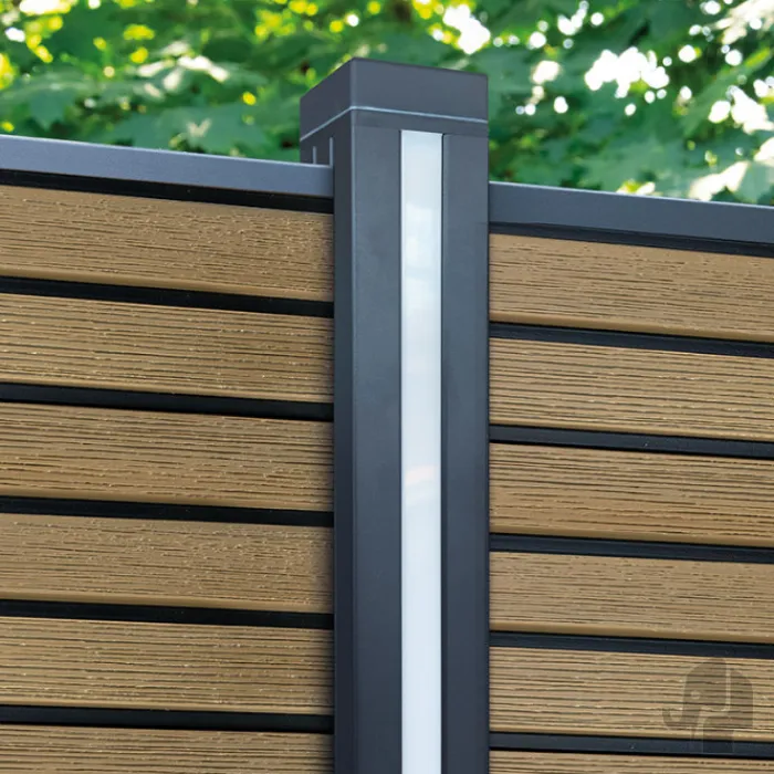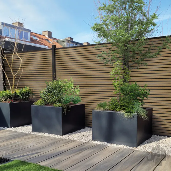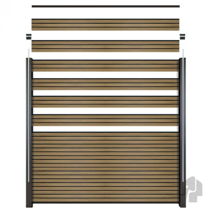 Hot Elephant Schutting composiet Design donkerbruin met blank aluminium frame (180 x 180 cm)