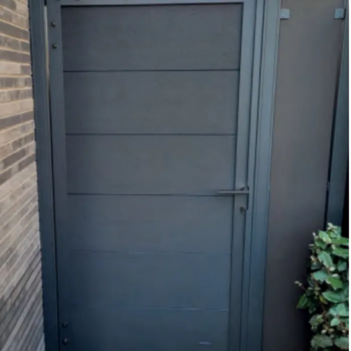Tuindeur composiet Forte Antraciet met hang- en sluitwerk, slot en antraciet aluminium kader (90 x 180 cm). Afhankelijk van hoe je het hang- & sluitwerk monteert is deze deur links- of rechtsdraaiend.
