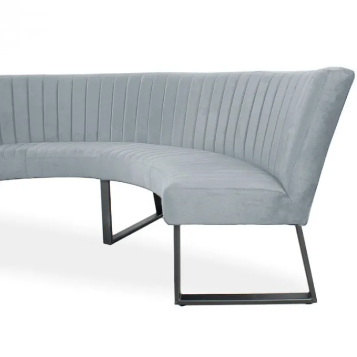 HomingXL ronde eetkamerbank geschikt voor een ronde tafel met een diameter van 130 cm. Deze stoere halfronde eetkamerbank Hengelo is gestoffeerd met de prachtige Element velours stof. De bank is uitgevoerd met zwarte metalen poten. Deze eetkamerbank heeft een stoere uitstraling en is zowel geschikt voor een industrieel als een modern interieur.