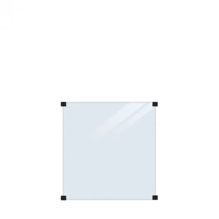 Plus Danmark glasplaat gehard helder glas 6 mm 90 x 91 cm (B x H). Wordt geleverd inclusief 4 glasklemmen.