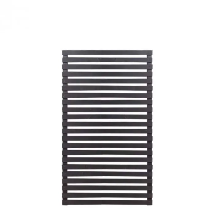 Plus tuinscherm recht vuren geïmpregneerd en zwart gegrond uit de serie Tokyo. De afmetingen van dit scherm zijn 83 x 140 cm (b x h). RVS geschroefd. Kleur: zwarte grondlaag op waterbasis, dichtstbijzijnde RAL 9005 (dient afgebeitst te worden).