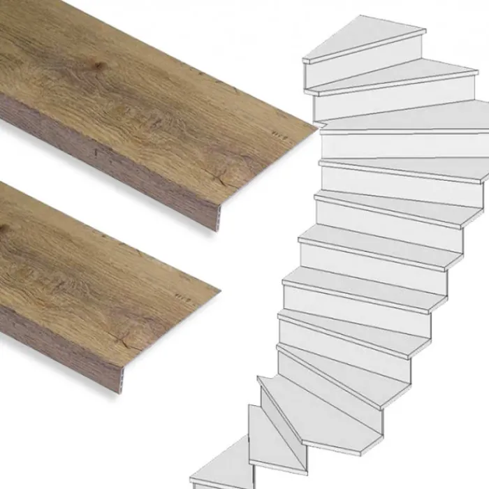 Dit is een complete Stepwoord traprenovatieset met SPC toplaag traptreden in de kleur rustiek eiken, inclusief montagekit en afwerkingskit. Deze complete set is geschikt voor een trap met 2 kwart draai met 14 treden. De set wordt geleverd zonder stootborden.