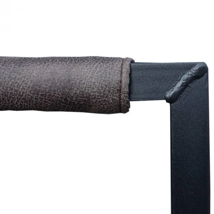 Deze stoel is verkrijgbaar in de kleuren cognac, antraciet, olijf groen en bruin en wordt geleverd met zwart gepoedercoat metalen poten. De verschillende kleuren zijn ook uitstekend met elkaar te combineren. De stoelen beschikken over een hoogwaardige afwerking met decoratieve stiksels.