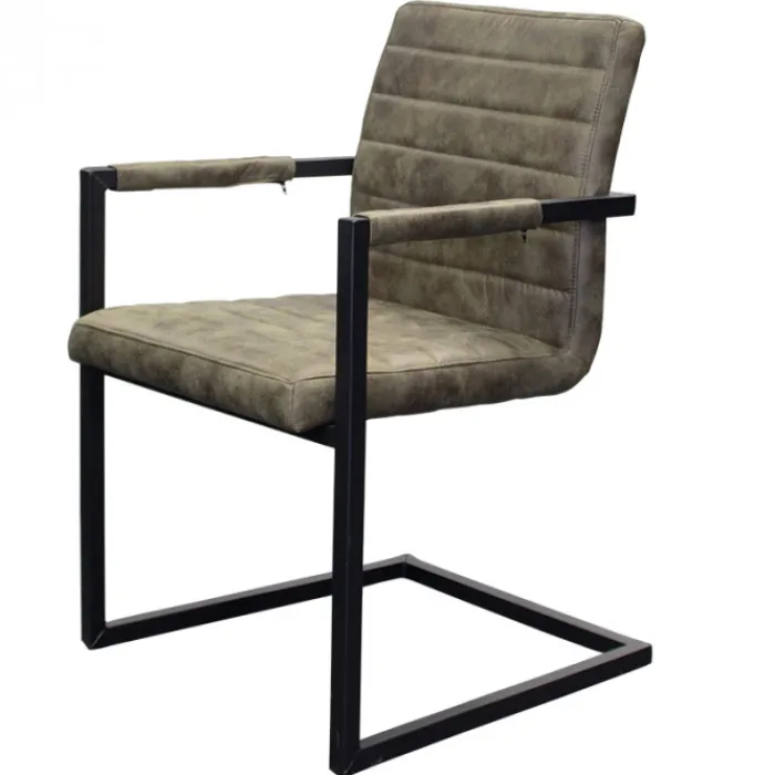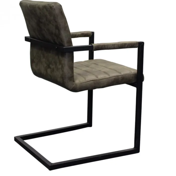 Deze stoel is verkrijgbaar in de kleuren cognac, antraciet, olijf groen en bruin en wordt geleverd met zwart gepoedercoat metalen poten. De verschillende kleuren zijn ook uitstekend met elkaar te combineren. De stoelen beschikken over een hoogwaardige afwerking met decoratieve stiksels.
