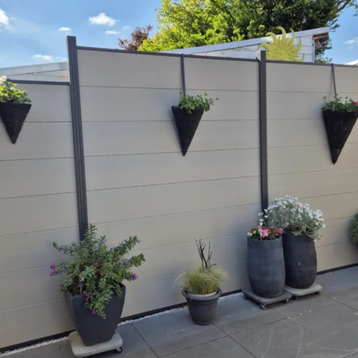 Schutting composiet co-extrusie Como bi-color met antraciet aluminium kader (180 x 180 cm). Deze schutting wordt geleverd als een zelfbouw pakket waarmee je zelf een unieke schutting kunt maken.