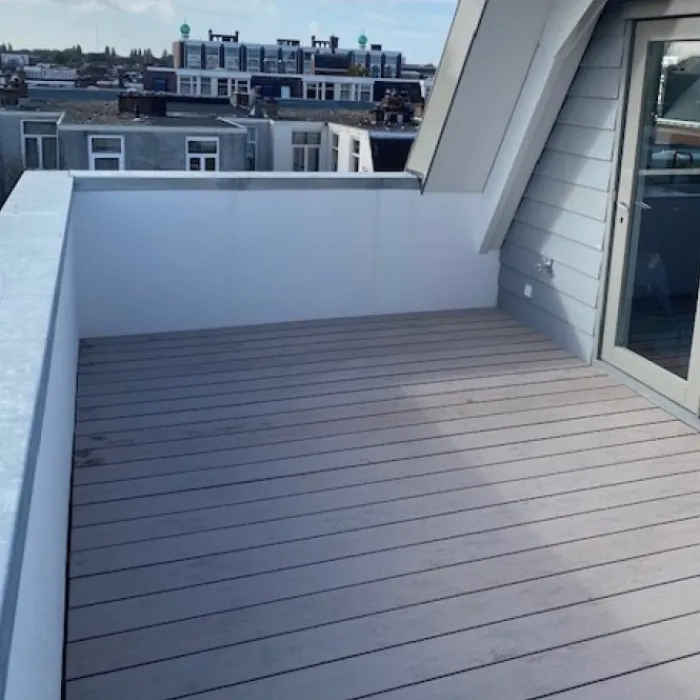 Vlonder totaalpakket voor 1,00 m2, gelegd met steengrijs composiet vlonderplanken van 500 cm lang, 2,1 cm hoog en 14,0 cm breed. Pakket bestaat uit vlonderplanken, onderbalken, clips en schroeven om een vlonderterras van te maken. De bijbehorende clips en de kop van de schroef zijn in dezelfde kleur. Vul het benodigd aantal vierkante meter terras in en de website rekent automatisch uit hoeveel planken je ontvangt.