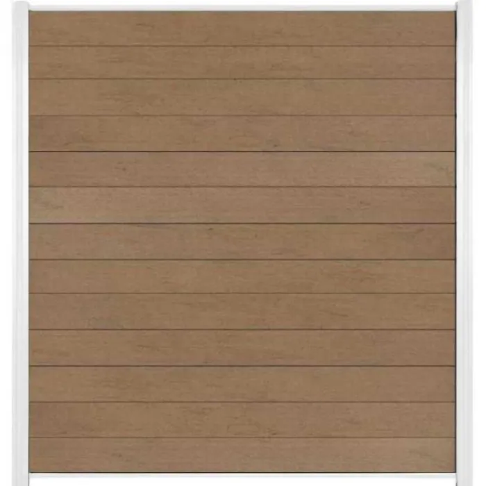 C-Wood zelfbouw schutting composiet Mix & Match bruinvlam met wit aluminium accessoires. Afmeting is 180 x 200 cm. De schuttingdelen schuif je van bovenaf tussen de C-Wood Modular / Mix & Match palen. De volgorde van de verschillende planken kan je zelf bepalen. Je begint onder en eindigt bovenop. De netto hoogte van deze schutting is enkele centimeters lager dan de opgegeven 200 cm.