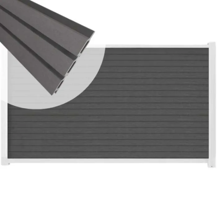 C-Wood zelfbouw schutting composiet Rhombus Triple rock grey met wit aluminium accessoires. Geschikt om een scherm te maken van 90 cm hoog en maximaal 180 cm breed. De breedte is eenvoudig in te korten.