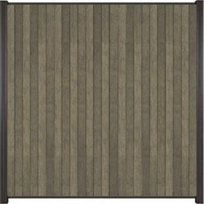 C-Wood zelfbouw schutting composiet Rhombus Double grijs met antraciet aluminium accesoires. Met deze bundel kun je een verticale schutting bouwen circa 170 cm breed en 180 cm hoog.