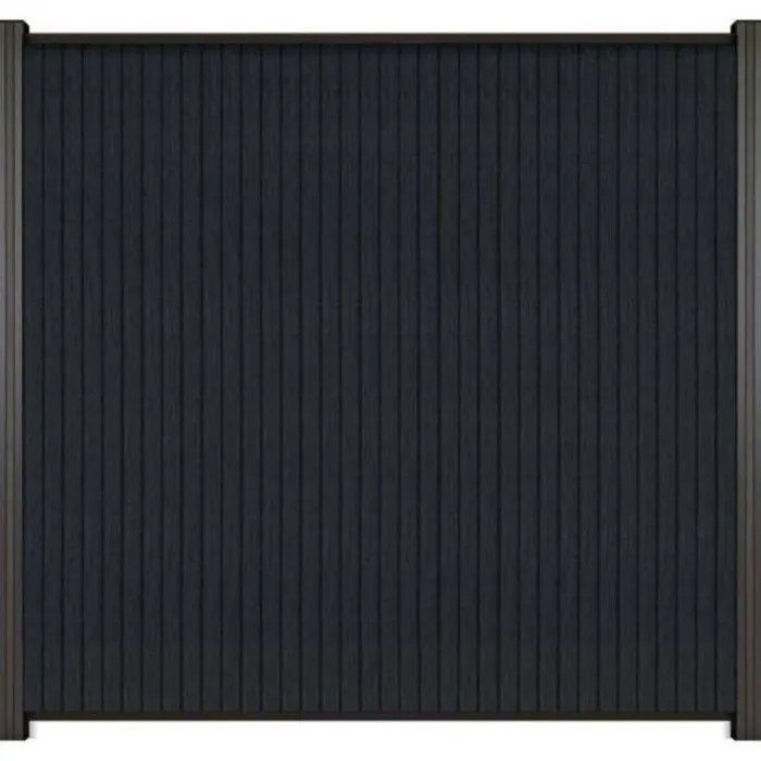 C-Wood zelfbouw schutting composiet Rhombus Triple antraciet met antraciet aluminium accesoires. Met deze bundel kun je een verticale schutting bouwen circa 170 cm breed en 180 cm hoog.