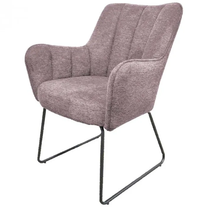 Bo Lundgren eetkamerstoel Kevin, stof Bjorn grof geweven, kleur lavender. De eetkamerstoel Arne is een fraaie eetkamerstoel gestoffeerd met een grof geweven stof in de kleur lavender. Het kuipvormige model zorgt ervoor dat de stoel heerlijk comfortabel zit! Zo kun je urenlang heerlijk tafelen…! De Kevin is uitgevoerd met een zwart metalen onderstel. Deze geeft de stoel een klassieke uitstraling.