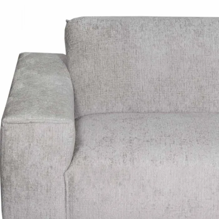 Deze moderne loungebank (299×220 cm) met een zeer knuffelbare stof is de Höft. Deze bank is uitgevoerd in de stof Fusion Steel (grijs). De stof heeft een gemêleerde kleur. Doordat de basis iets donkerder is, geeft dit een mooi diep effect. De bank heeft vaste kussens, maar door de manier hoe deze kussens gestikt zijn, is het net alsof de bank losse kussens heeft. De Höft heeft dunne, maar zeer stevige half ronde poten. Dit zorgt ervoor dat je bank in je woonkamer ruimtelijk oogt.