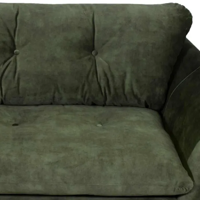 Deze mooie loungebank (160 x 271 cm) met decoratieve knopen in de zitting en rugkussens is uitgevoerd in de stof velours Adore groen. Door de velours stof krijgt de loungebank een zeer opvallende en rijke uitstraling. Daardoor is deze bank uitermate geschikt voor ieder interieur. De Kuddar heeft een zachte maar toch stevig zitcomfort. De Kuddar heeft 3 losse rugkussen en 3 losse zitkussens voorzien van een rits. De bank heeft 4 sledepoten. Doordat deze bank dunne, maar zeer stevige sledepoten heeft, zorgt de bank ervoor dat je woonkamer ruimtelijk oogt. De bank is dus ook perfect in een kleinere ruimte.