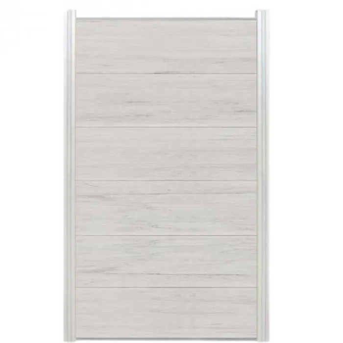 Schutting composiet co-extrusie Como beige met blank aluminium kader (90 x 180 cm). Deze schutting wordt geleverd als een zelfbouw pakket waarmee je zelf een unieke schutting kunt maken.