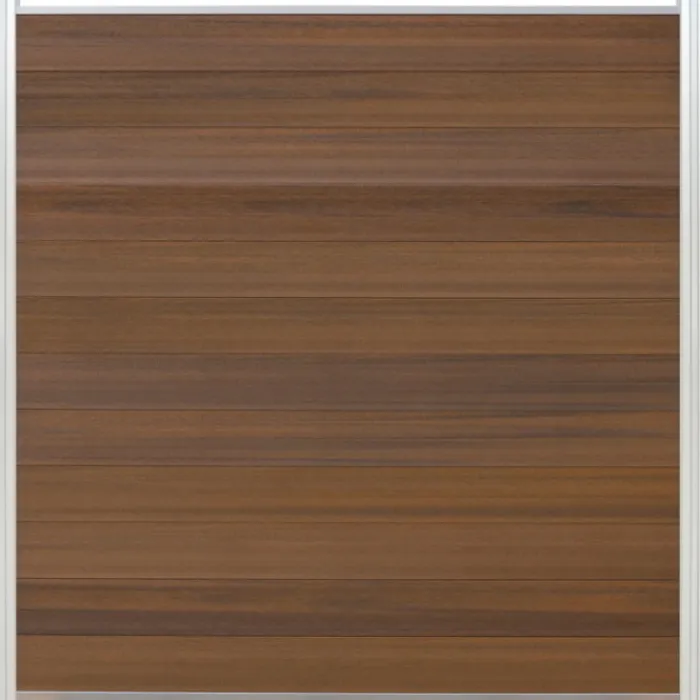 Schutting composiet co-extrusie Garda teak met blank aluminium kader (180 x 180 cm). Deze schutting wordt geleverd als een zelfbouw pakket waarmee je zelf een unieke schutting kunt maken.