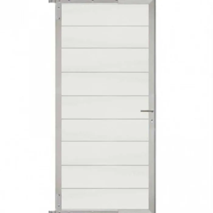 C-Wood zelfbouw tuindeur aluminium blank frame Modular – composiet co-ex wit. Afmeting 90 x 200 cm. De hoogte van de tuindeur is enkele centimeters lager dan de opgegeven 200 cm. De tuindeur wordt geleverd inclusief deurbeslag.