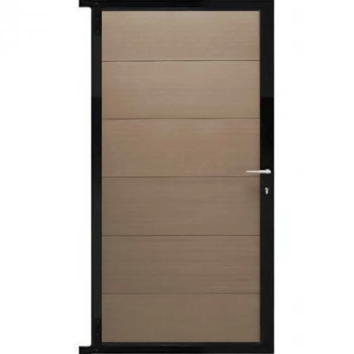 C-Wood tuindeur composiet Mix & Match frame aluminium zwart (90 x 180 cm). De netto hoogte van deze tuindeur is enkele centimeters lager dan de opgegeven 180 cm. Deze komt uit op 175 cm hoog. De deur wordt geleverd inclusief deurbeslag.