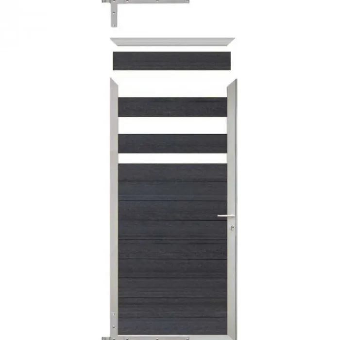 C-Wood tuindeur composiet Mix & Match frame aluminium blank (90 x 180 cm). De netto hoogte van deze tuindeur is enkele centimeters lager dan de opgegeven 180 cm. Deze komt uit op 175 cm hoog. De deur wordt geleverd inclusief deurbeslag.