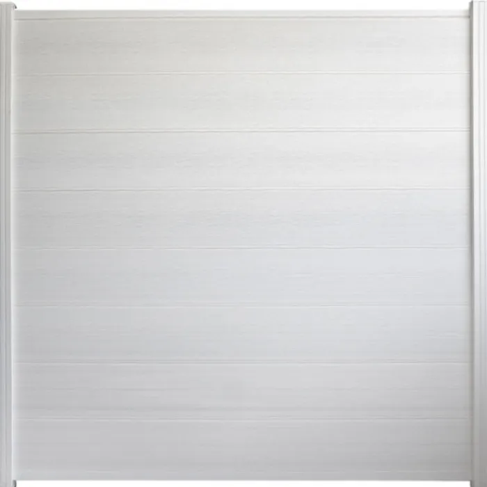 C-Wood zelfbouw schutting composiet Modular wit met wit aluminium accessoires. Geschikt om een scherm te maken van 180 cm hoog en maximaal 180 cm breed. De breedte is eenvoudig in te korten. De netto hoogte van het scherm is enkele centimeters lager dan de opgegeven 180 cm.