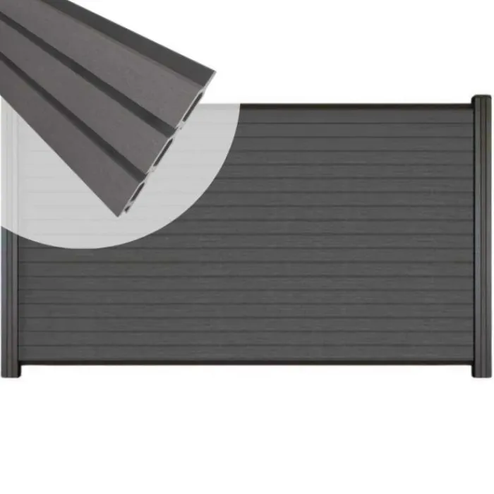 C-Wood zelfbouw schutting composiet Rhombus Triple rock grey met antraciet aluminium accessoires. Geschikt om een scherm te maken van 90 cm hoog en maximaal 180 cm breed. De breedte is eenvoudig in te korten.