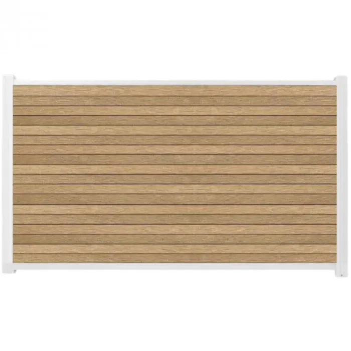 C-Wood zelfbouw schutting composiet Rhombus Triple teak met wit aluminium accessoires. Geschikt om een scherm te maken van 90 cm hoog en maximaal 180 cm breed. De breedte is eenvoudig in te korten.
