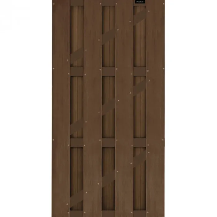 Tuindeur composiet Basic bruin met aluminium-bruin frame. Deur wordt geleverd inclusief hang en sluitwerk met cilinderslot. De totale afmeting is 90 x 180 cm.