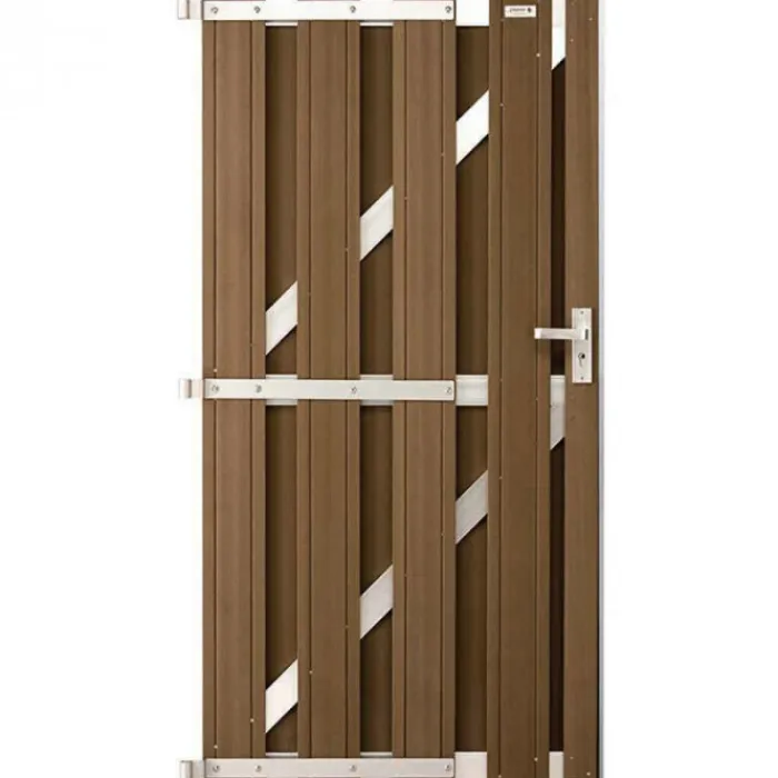 Tuindeur composiet Design Bruin met hang- en sluitwerk, slot en sleutels. Blank aluminium frame 90 x 180 cm.