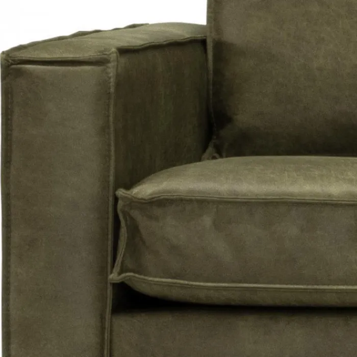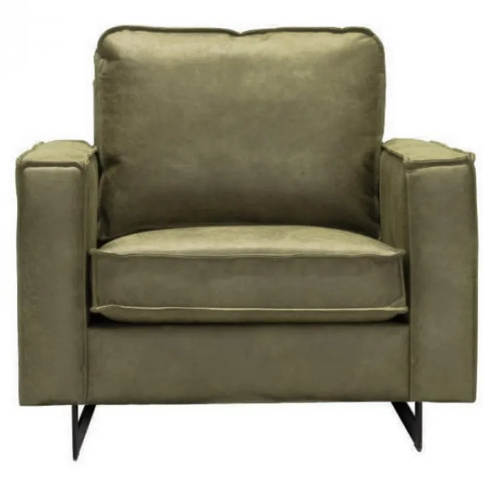 De fauteuil Riverdance is een stoere en robuuste stoel met rechte armleuningen. Deze fauteuil is geschikt voor vrijwel ieder interieur en wordt geleverd met unieke industriële sleepoten. Uitgevoerd in de groen-kleurige leersoort Dalton 14.