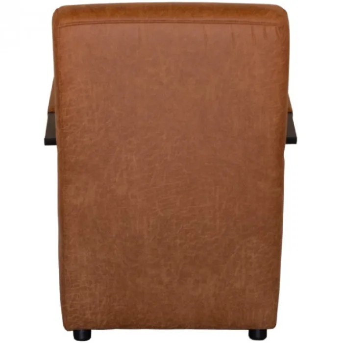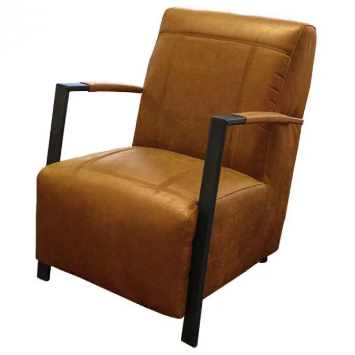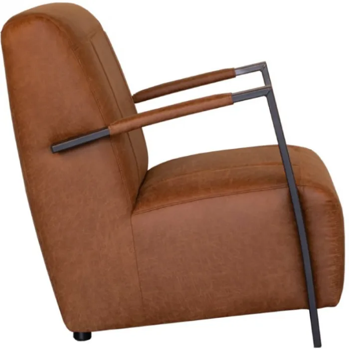 De fauteuil Rosetta is een elegante, maar ook een industriële fauteuil met een stevig zitcomfort. De poten zijn uitgevoerd met een antracietgrijze coating en zijn voorzien van stoere lasverbindingen aan de voorzijde van de armleuning. De fauteuil past bij iedere woonstijl, van klassiek tot modern en van landelijk tot trendy. Een heerlijke stoel om lekker in weg te kruipen voor de kachel of de televisie. De fauteuil is bekleed met de cognac-kleurige lederlook stof Missouri 03.