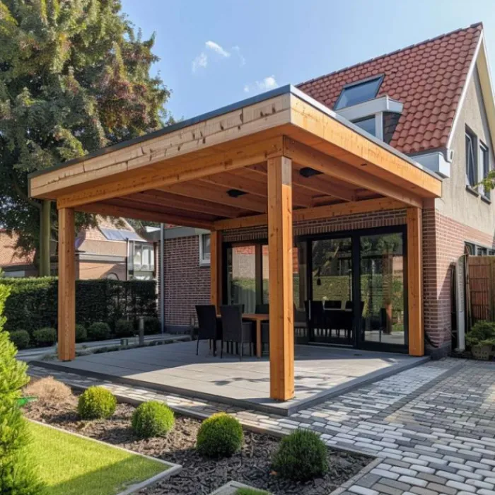 Bouwpakket voor een Douglas Veranda van 3,00 x 3,00 meter. Zie de handleiding voor verdere montage. De afbeelding dient ter inspiratie. Met dit bouwpakket maak je een basis veranda die je naar eigen wensen kunt uitbreiden.