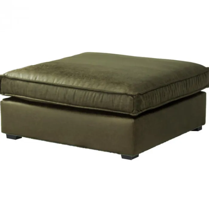 Deze poef kan gebruikt worden als lounge-element, maar kan ook prima dienen als tafel, wanneer je hier een groot dienblad op plaatst. De poef is uitgevoegd in de groen-kleurige leersoort Dalton en past hierdoor goed bij de Riverdance. Deze poef wordt geleverd met zwarte blokpoten.