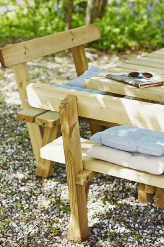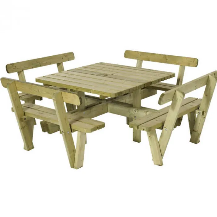 Clearance Plus Danmark Picknicktafel vuren geimpregneerd – Kombi – vierkant met rugleuning – 237 x 237 x 84 cm