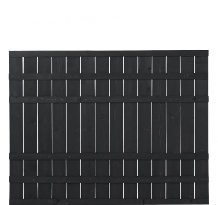 Plus tuinscherm recht vuren geïmpregneerd en zwart afgelakt uit de serie Rustik. Met ruw oppervlak. De afmetingen van dit scherm zijn 180 x 138 cm (b x h). RVS geschroefd.