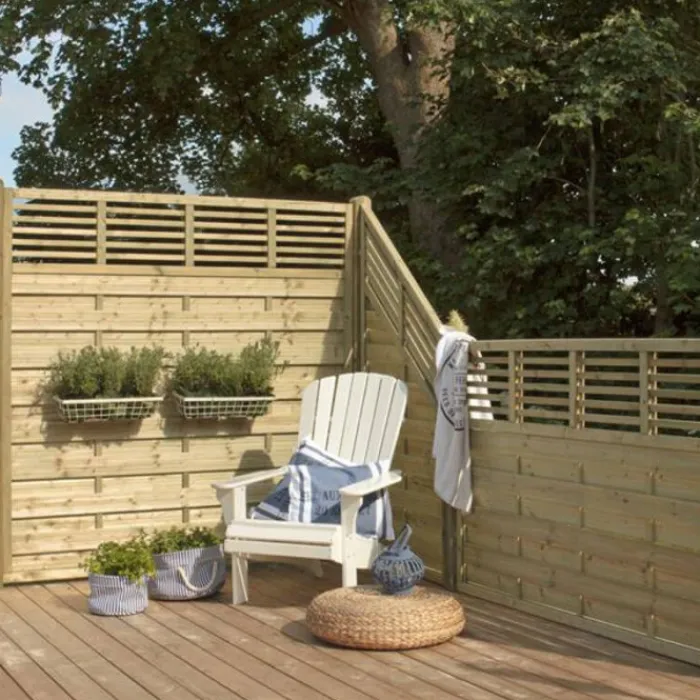 Outlet Plus Danmark Schutting met doorkijk – Rondo schuin groen geimpregneerd (90 x 142/104 cm)