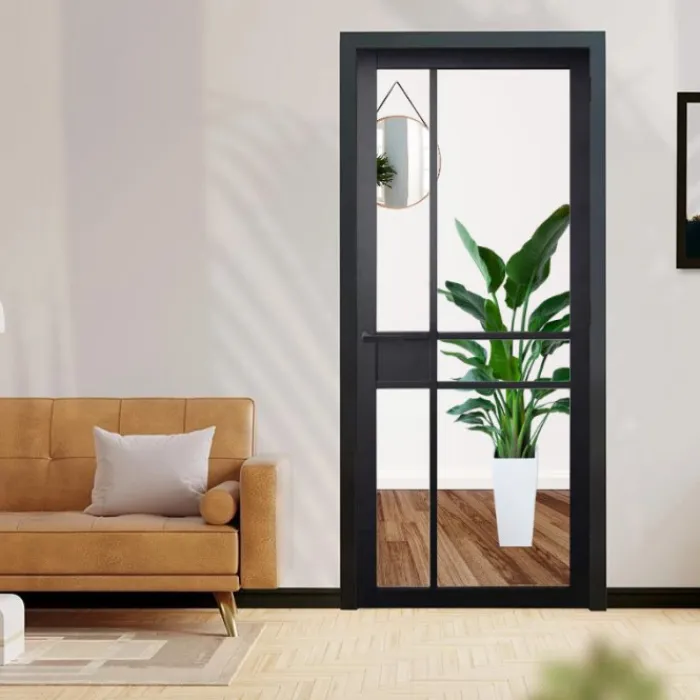 De Austria Imola binnendeur uit de serie Nero Legno is een industriële houten deur met een uitstraling van een luxe stalen deur. Dit komt door de extra slanke stijlen. Deze zwarte binnendeur is gemaakt van hout met HDF toplaag.