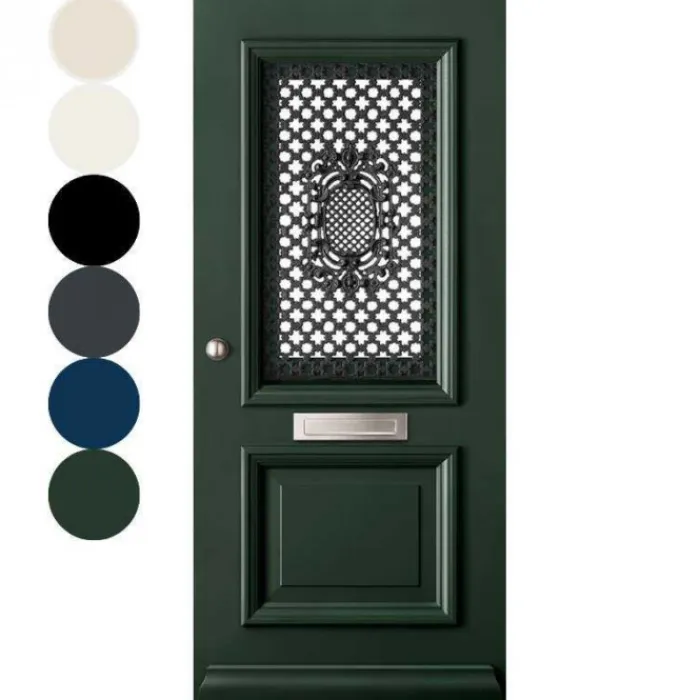 Deze klassieke voordeur uit de serie City Line is gemaakt van Merbau hardhout. Deze voordeur heeft typisch Nederlandse facetprofielen met glas en een rooster. Achter dit rooster zit een draairaam gemonteerd met mat chroom-kleurig draairaambeslag. De deur is voorbehandeld met een grijs kleurige Prime Quality verf. Deze is gemaakt op basis van alkydhars (120 mi Sigmalitch A22). Na de montage dient de deur nog afgelakt te worden in de gewenste kleur voor de garantie (zie ook de bijlage verwerkingsvoorschriften, garantie en voorwaarden). Het is ook mogelijk om de deur af te laten lakken tegen een meerprijs. Het is hierbij aan te raden om voor alle deelbewerkingen te kiezen. Ga je bijvoorbeeld zelf scharnieren infrezen, dan dien je deze nogmaals van de benodigde verlagen te voorzien. Bij de deur Zaltbommel is een briefsleuf mogelijk.