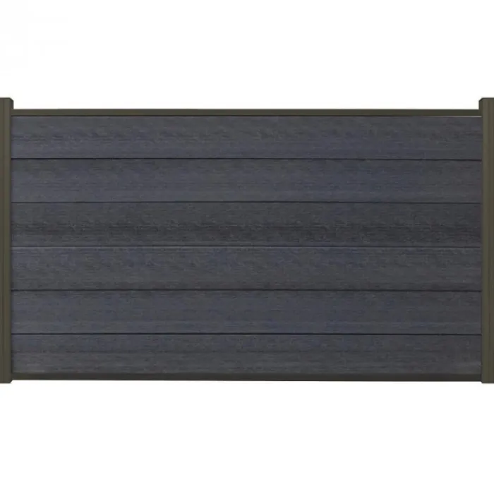 Schutting composiet co-extrusie Garda antraciet met antraciet aluminium kader (180 x 90 cm). Deze schutting wordt geleverd als een zelfbouw pakket waarmee je zelf een unieke schutting kunt maken.