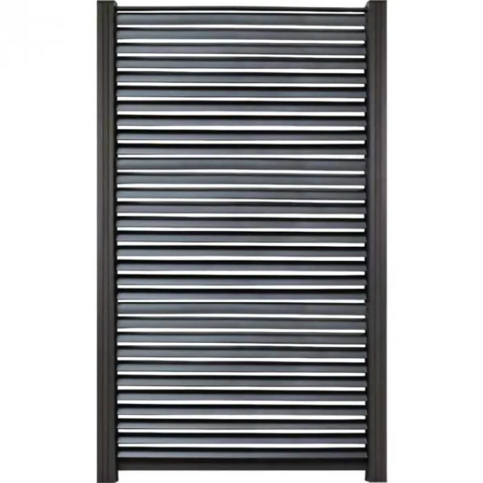 C-Wood shutter met antraciet aluminium verstelbare lamellen. Dit zijn 3 pakketten van 90 cm breed en 60 cm hoog en in totaal maak je hiermee een schutting hoogte van 180 cm. De lamellen zijn flexibel te verstellen in iedere gewenste stand. Deze shutter is te combineren met de zelfbouw Modular lamellen.