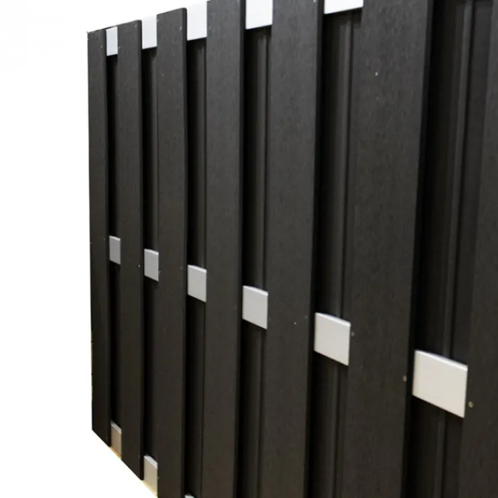 Complete set van 2 tuinhekken Bari antraciet met blank aluminium frame 180 x 123 cm. Aangevuld met 3 blank aluminium tuinpalen 6,8 x 6,8 cm lengte 186 cm. Hiermee kun je een afscheiding maken van maximaal 3,81 meter breed en 1,23 meter hoog. De tuinhekken zijn eenvoudig in de breedte in te korten door een of meerdere kunststof lamellen eraf te schroeven. De aluminium liggers kun je inkorten met een ijzerzaag.