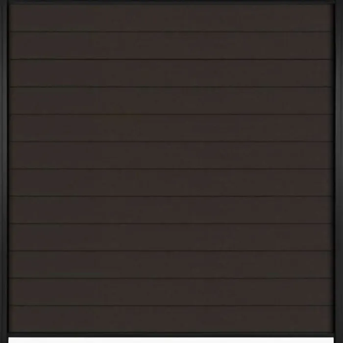 C-Wood zelfbouw schutting composiet Mix & Match antraciet met zwart aluminium accessoires. Afmeting is 180 x 180 cm. De schuttingdelen schuif je van bovenaf tussen de C-Wood Modular / Mix & Match palen. De volgorde van de verschillende planken kan je zelf bepalen. Je begint onder en eindigt bovenop. De netto hoogte van deze schutting is enkele centimeters lager dan de opgegeven 180 cm.