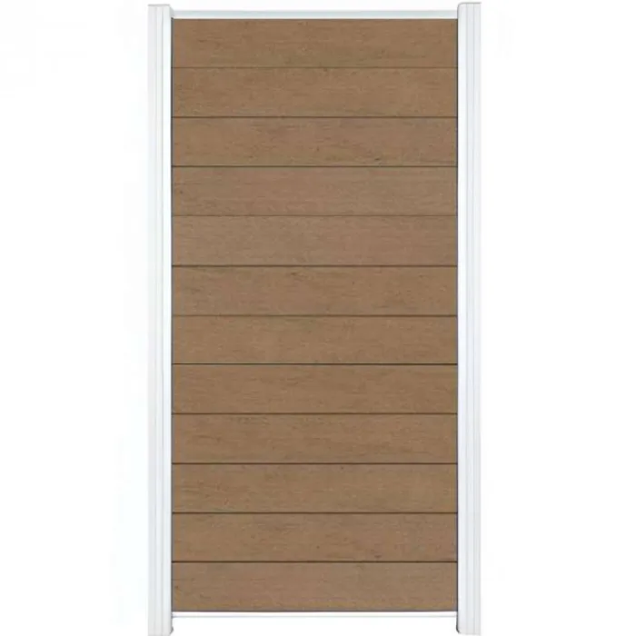 C-Wood zelfbouw schutting composiet Mix & Match bruinvlam met wit aluminium accessoires. Afmeting is 90 x 180 cm De schuttingdelen schuif je van bovenaf tussen de C-Wood Modular / Mix & Match palen. De volgorde van de verschillende planken kan je zelf bepalen. Je begint onder en eindigt bovenop. De netto hoogte van deze schutting is enkele centimeters lager dan de opgegeven 180 cm. De onderdelen dien je in de breedte in te korten om tot 90 cm breed te komen.