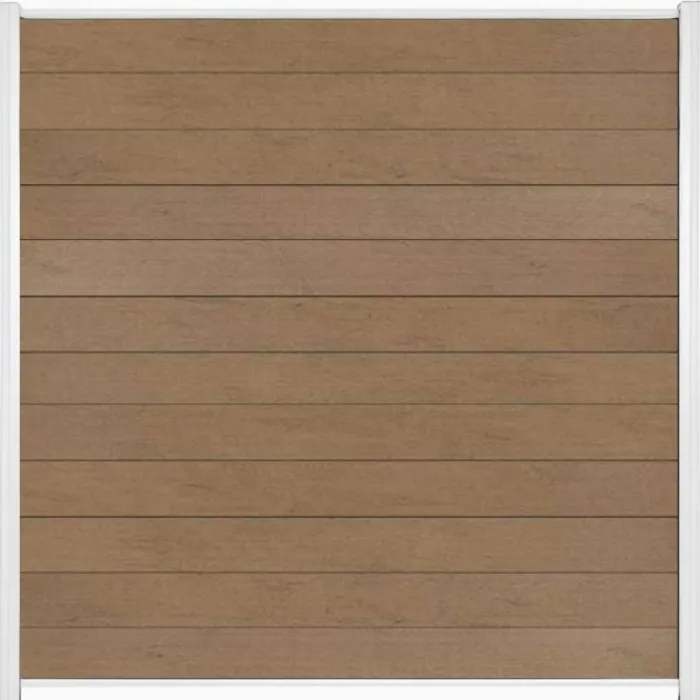 C-Wood zelfbouw schutting composiet Mix & Match bruinvlam met wit aluminium accessoires. Afmeting is 180 x 180 cm. De schuttingdelen schuif je van bovenaf tussen de C-Wood Modular / Mix & Match palen. De volgorde van de verschillende planken kan je zelf bepalen. Je begint onder en eindigt bovenop. De netto hoogte van deze schutting is enkele centimeters lager dan de opgegeven 180 cm.