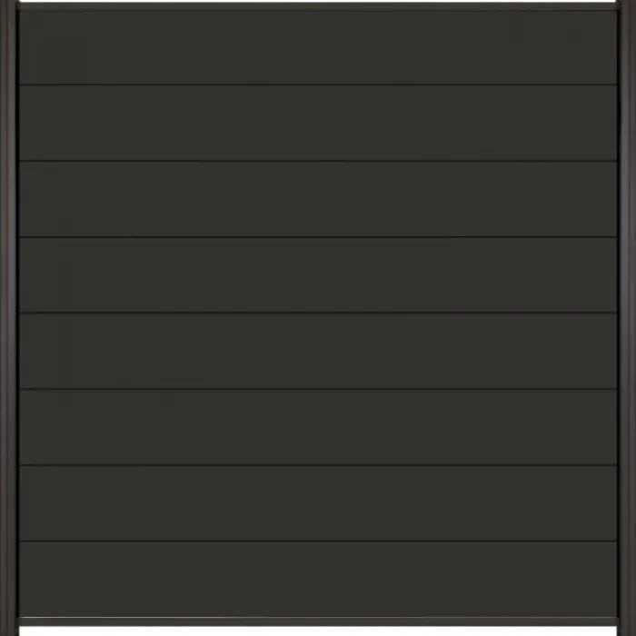 C-Wood zelfbouw schutting composiet Modular antraciet met antraciet aluminium accessoires. Geschikt om een scherm te maken van 180 cm hoog en maximaal 180 cm breed. De breedte is eenvoudig in te korten. De netto hoogte van het scherm is enkele centimeters lager dan de opgegeven 180 cm.