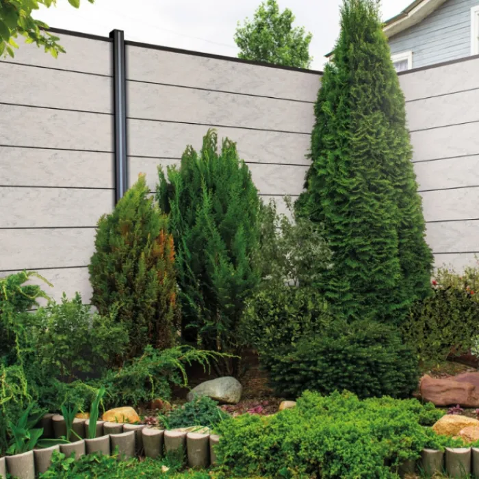 Deze Elephant Modular composiet tuinscherm set bestaat uit 2 afsluitlijsten boven en onder, 1 bevestigingsset, 8 veren antraciet aluminium en 9 composiet lamellen. Bestel hierbij de bijbehorende Modular tuinpalen. Je stapelt eenvoudig de schutting tussen de palen in. De composiet lamellen zijn bicolor betongrijs, de aluminium tussenstrips (veren) zijn in de kleur antraciet aluminium.