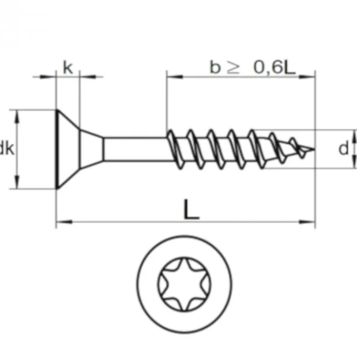 HomingXL schroeven RVS (inox) 4 x 50 TX (200 stuks). Roestvast staal, aandrijving Torx 20.